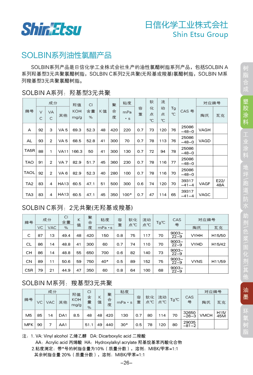 氯醋树脂(Vinyl Chloride-Vinyl Acetate Copolymer Resin)